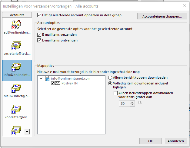 Klik op OK en nu zou het (voor dit mailaccount) weer moeten werken.