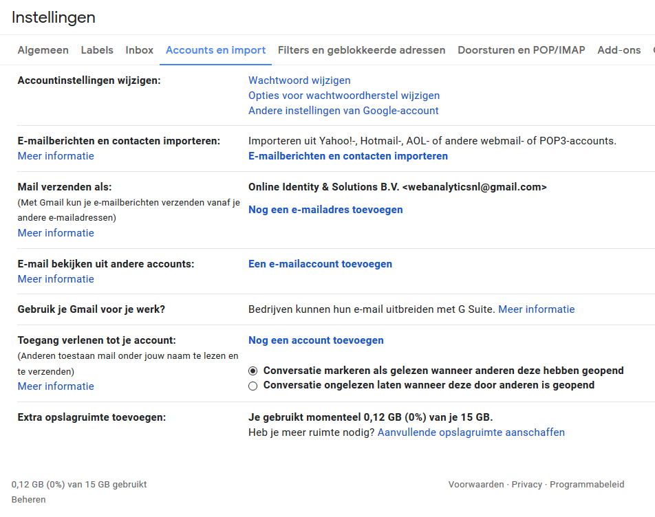 U kunt nu e-mails ontvangen van uw e-mailadres in Gmail. De volgende stap is om de uitgaande instellingen in te stellen, zodat u tevens e-mails kunt verzenden via Gmail.