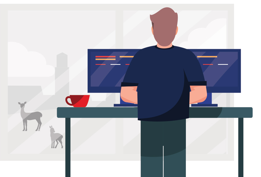 - Een eigen laptop en een fijne werkplek (met uitzicht) die van alle gemakken voorzien is. Je kunt (indien gewenst) ook gebruik maken van stabureaus.